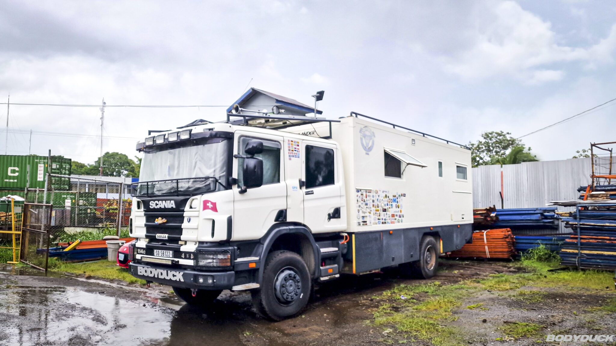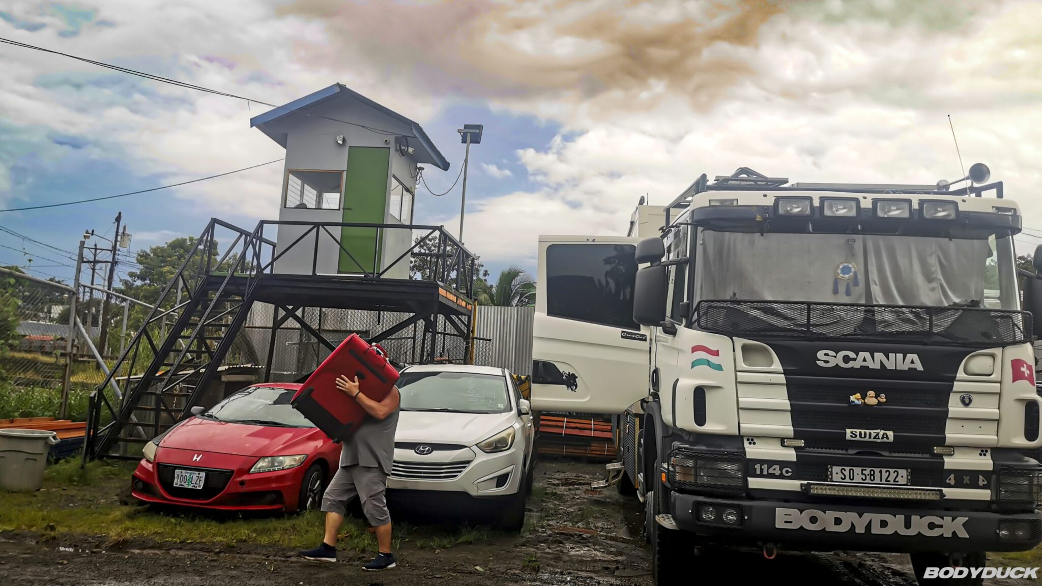 Die Fahrt nach Alajuela verzögert sich aufgrund eines Unfalls auf etwa fünf Stunden, wodurch wir erst in letzter Minute bei Terminales Unidas de Carga Internacional SA eintreffen. Dank der vorherigen telefonischen Absprache mit Francisco dürfen wir die Nacht sicher im Hof des Geländes verbringen. Die Suche nach einem geeigneten Lagerplatz für Bodyduck gestaltet sich jedoch schwieriger als erwartet, da Marco uns aufgrund potenzieller Einbruchsrisiken zu einer Vorab-Besichtigung rät.
