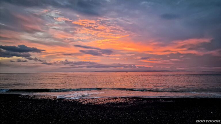 Gegen Abend fallen die Temperaturen so stark ab, dass wir seit langer Zeit wieder eine deutliche Kälte verspüren, die das Tragen eines Pullovers erforderlich macht. Die Nacht verläuft ruhig, wobei frische Bergluft durch das geöffnete Fenster in den Bodyduck dringt. Über der Wolkendecke wird uns zudem ein äusserst schöner Sonnenuntergang geboten.