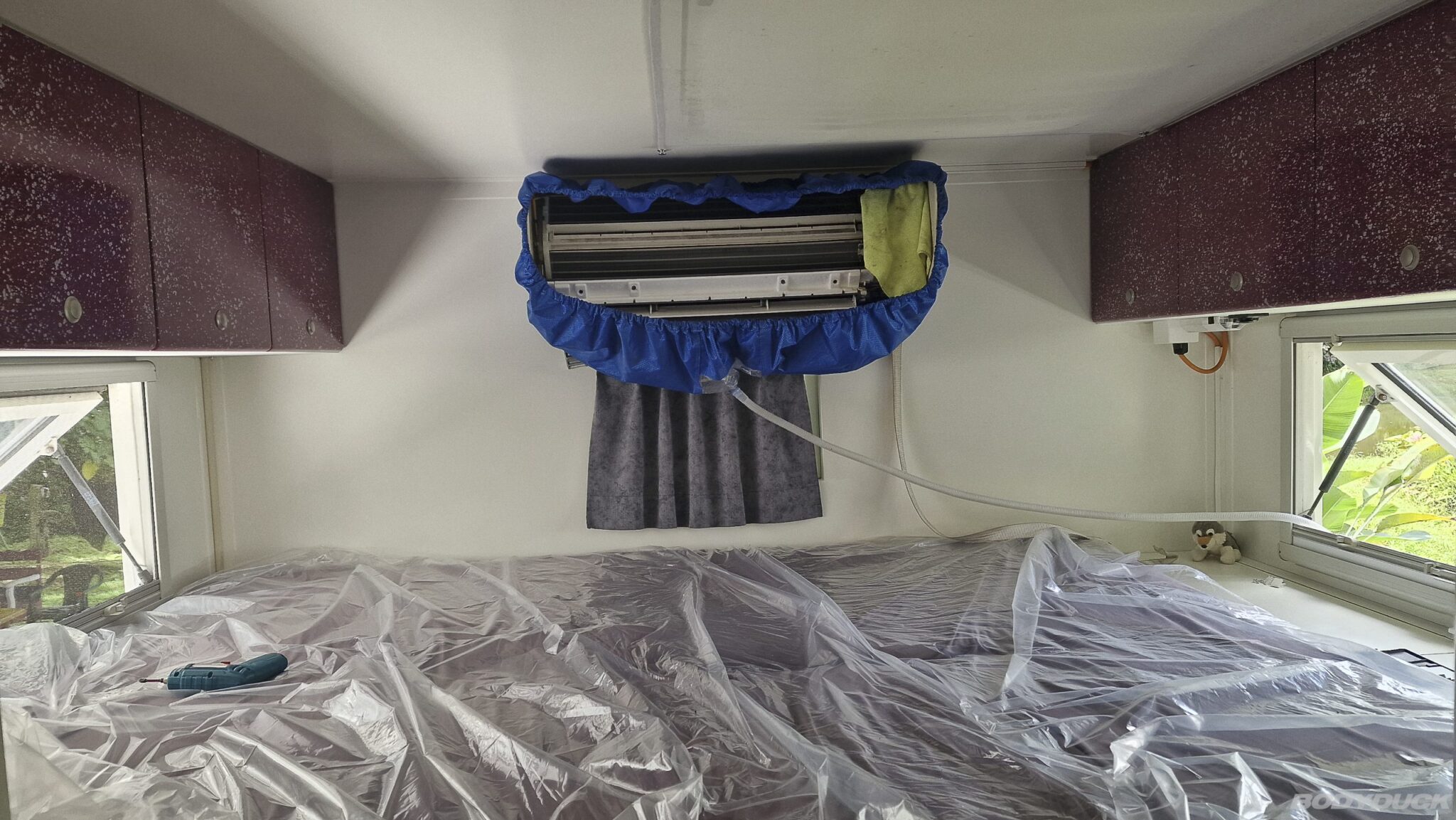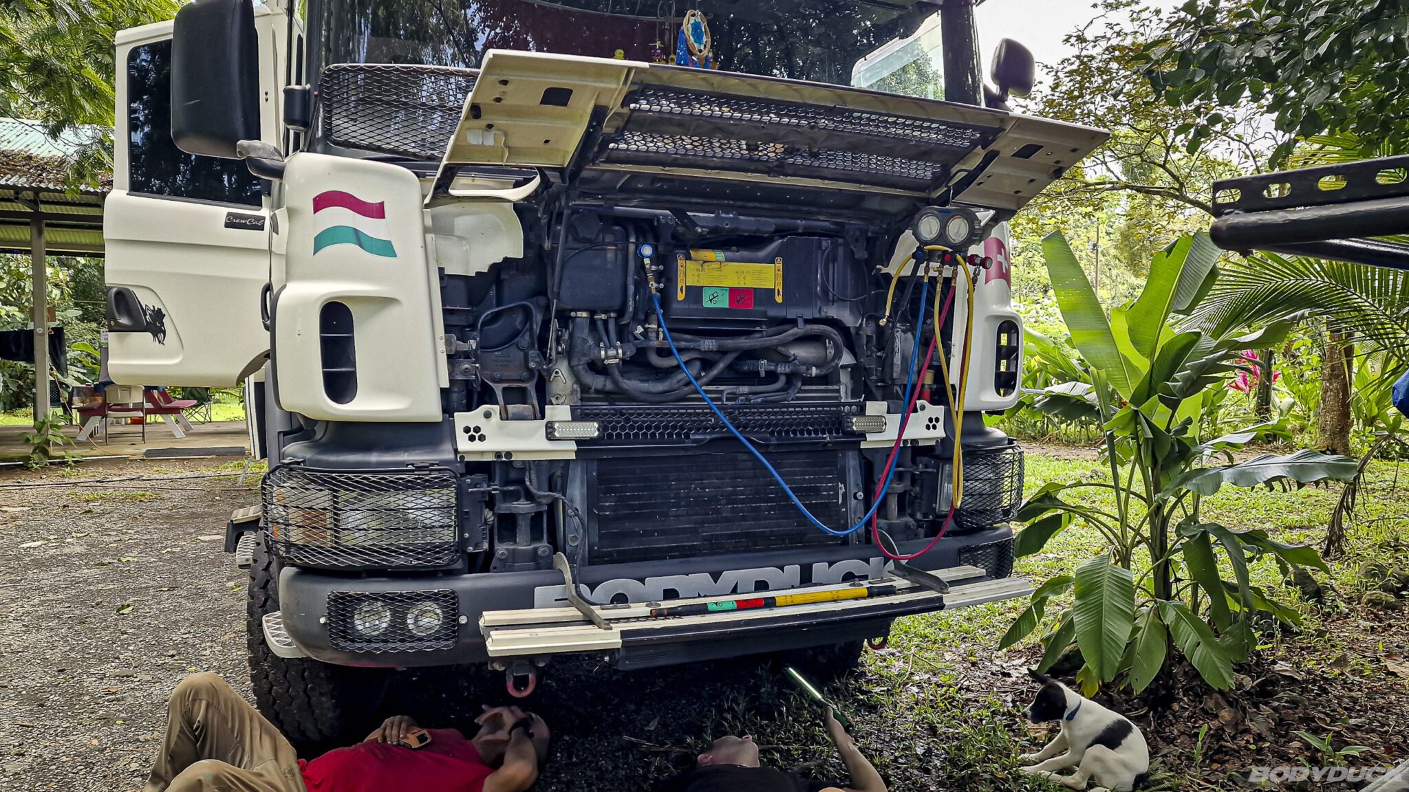 Wir quartieren uns erneut bei Marco auf dem Campingplatz La Fortuna ein, da uns dieser Ort die nötige Sicherheit bietet, um unabhängig von den Regengüssen anstehende Unterhaltsarbeiten zu erledigen. Als erste Massnahme lassen wir die Klimaanlage unseres Bodyduck überprüfen, da die Kühlleistung nicht mehr die gewohnten Werte erreicht. Wir fordern hierfür die Spezialisten von Fillo Aires an.