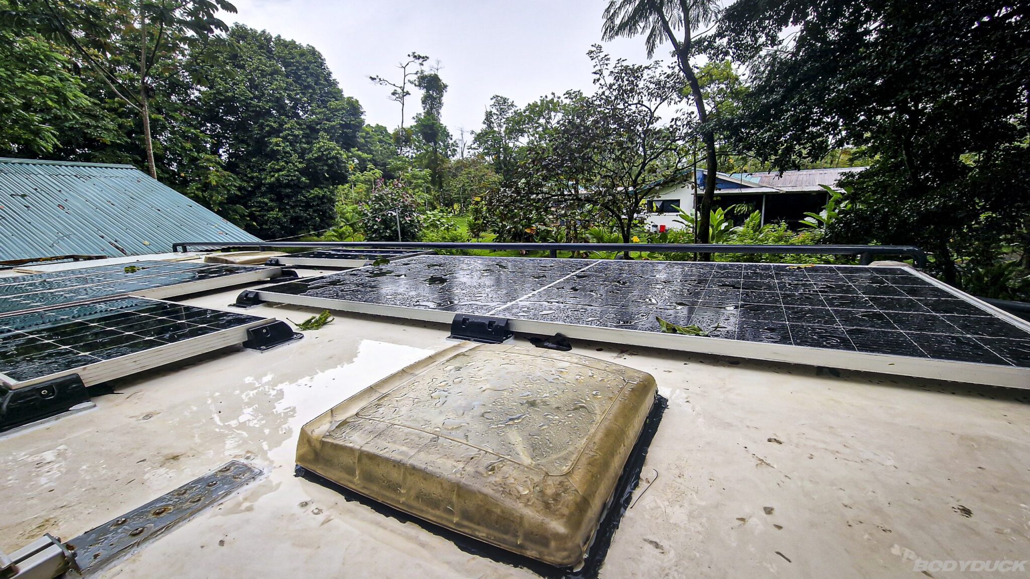 Wir nutzen die Zeit für ein umfassendes technisches Upgrade unserer Energie-Versorgung. In einem Online-Shop in San Jose erwerben wir ein zusätzliches Solarpanel mit 575 WP, um die Ladekapazität des Bodyduck zu erhöhen. Da die Masse im Shop fehlerhaft angegeben sind, ist das Panel deutlich grösser als erwartet, weshalb wir zwei alte Panele demontieren müssen, um den nötigen Platz auf dem Dach zu schaffen. Nach der problemlosen Lieferung und Montage verfügen wir nun über ein optimiertes System: Ein Ladekreis liefert 555 WP, während der zweite Kreis über einen separaten Regler mit dem neuen 575 WP Panel gespeist wird.
