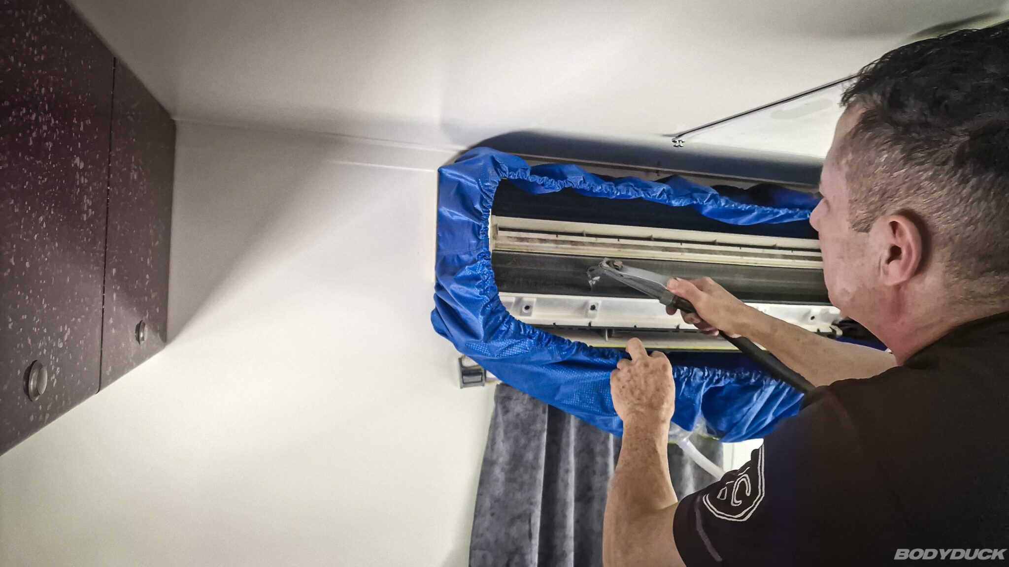 Nach einer gründlichen Systemprüfung kann der Techniker Entwarnung geben, da kein Leck im Kreislauf festgestellt wird. Die Anlage wird lediglich mit neuem Kältemittel aufgefüllt, wodurch sie sofort wieder die volle Kühlleistung erbringt. Parallel dazu wird das Split-Klimagerät im Wohnbereich einer Inspektion unterzogen. Abgesehen von einer notwendigen, gründlichen Reinigung stellt der Fachmann auch hier keine Mängel fest. Wir bedanken uns für den prompten Service, der die thermische Stabilität unseres Fahrzeug-Systems vollständig wiederherstellt.
