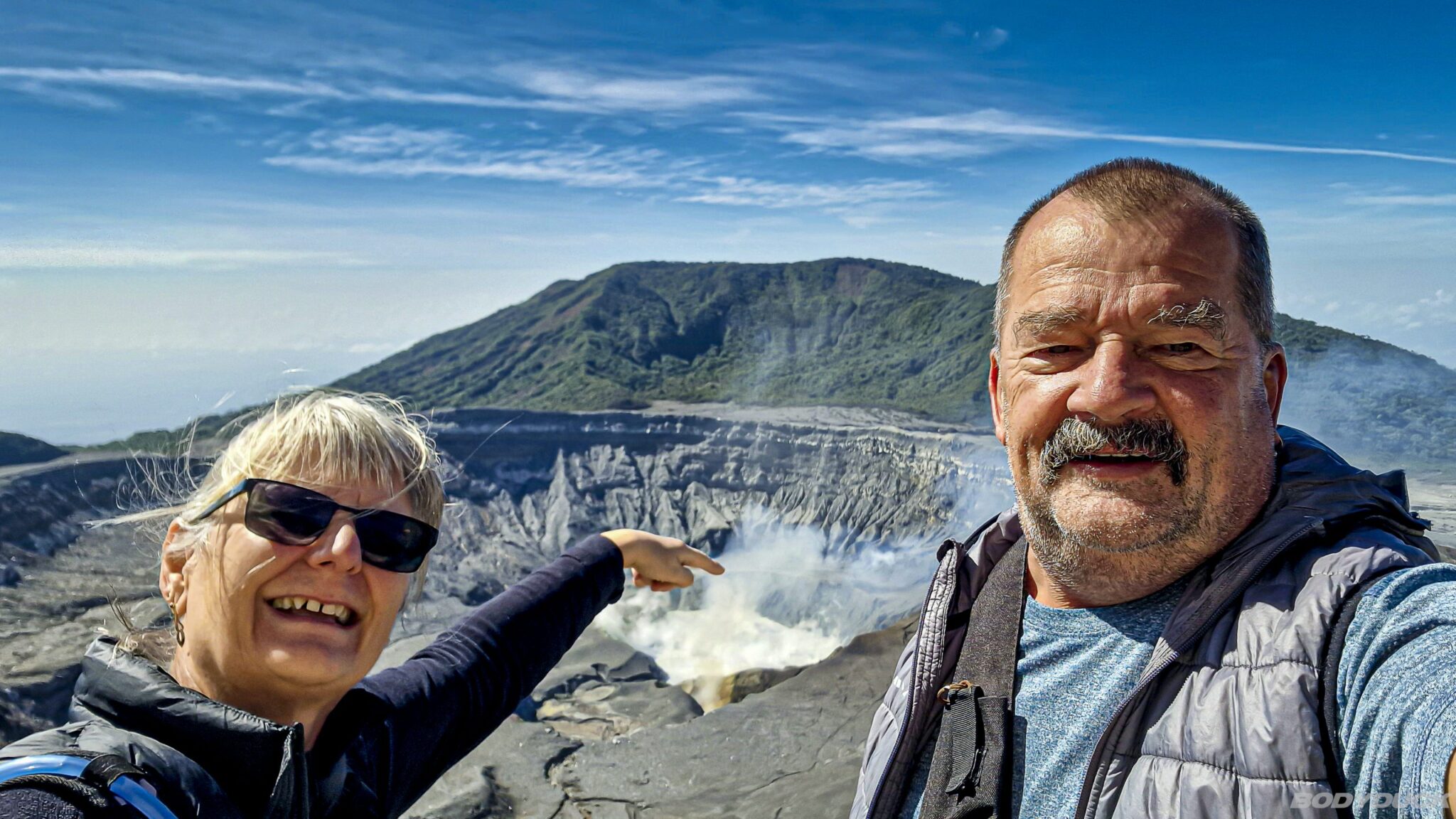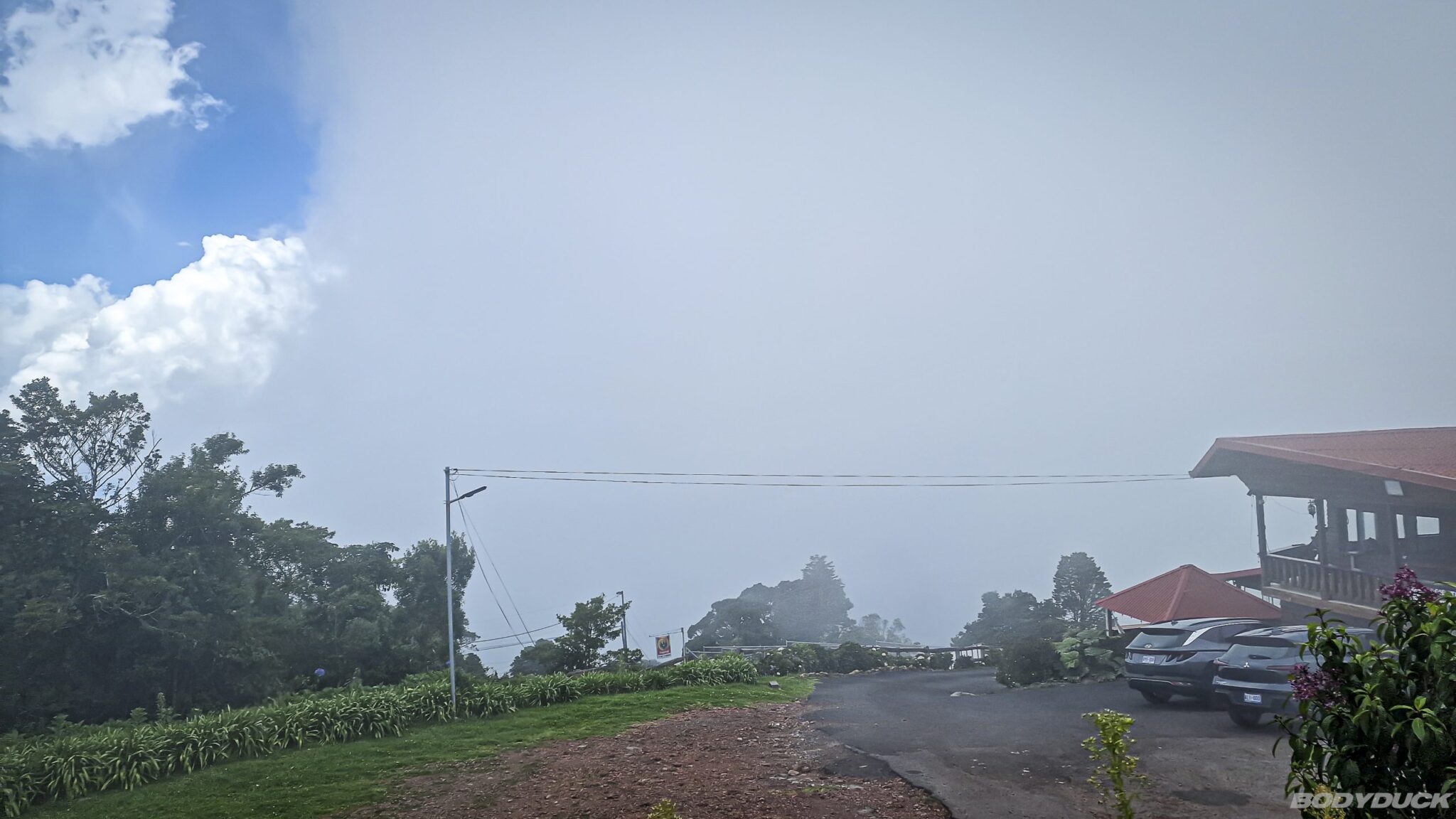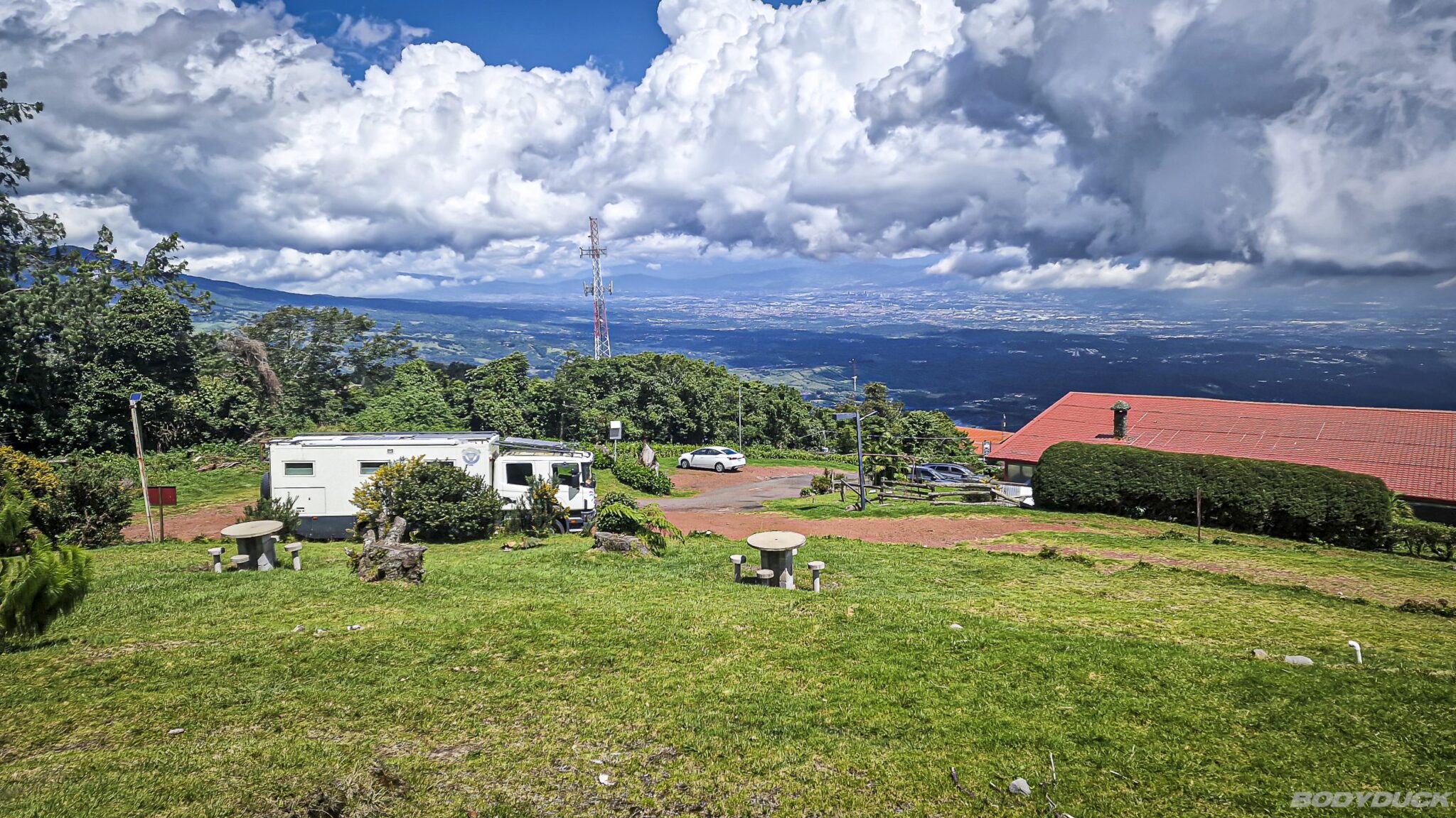Es bereitet uns grosse Freude, die Grossstadt zu verlassen und in die unberührte Natur aufzubrechen. Unser Ziel ist der Volcán Poás auf einer Höhe von 2700 Metern, wobei die Route durch ausgedehnte Kaffeeplantagen und farbenfrohe Dörfer führt. Mit zunehmender Höhe registrieren wir ein deutliches Sinken der Temperaturen. Beim „Bar y Restaurante Lo Que Tú Quieras“ erhalten wir die Erlaubnis, kostenlos auf dem Parkplatz zu übernachten, sofern wir dort konsumieren. Von diesem Standort aus geniessen wir bei Sonnenschein einen beeindruckenden Ausblick über die Provinzen Cartago, San Jose, Alajuela und Puntarenas, bis schliesslich dichte Wolken aufziehen und Nebel das Tal verdeckt. Trotz einsetzenden Nieselregens bleibt die Lage stabil.
