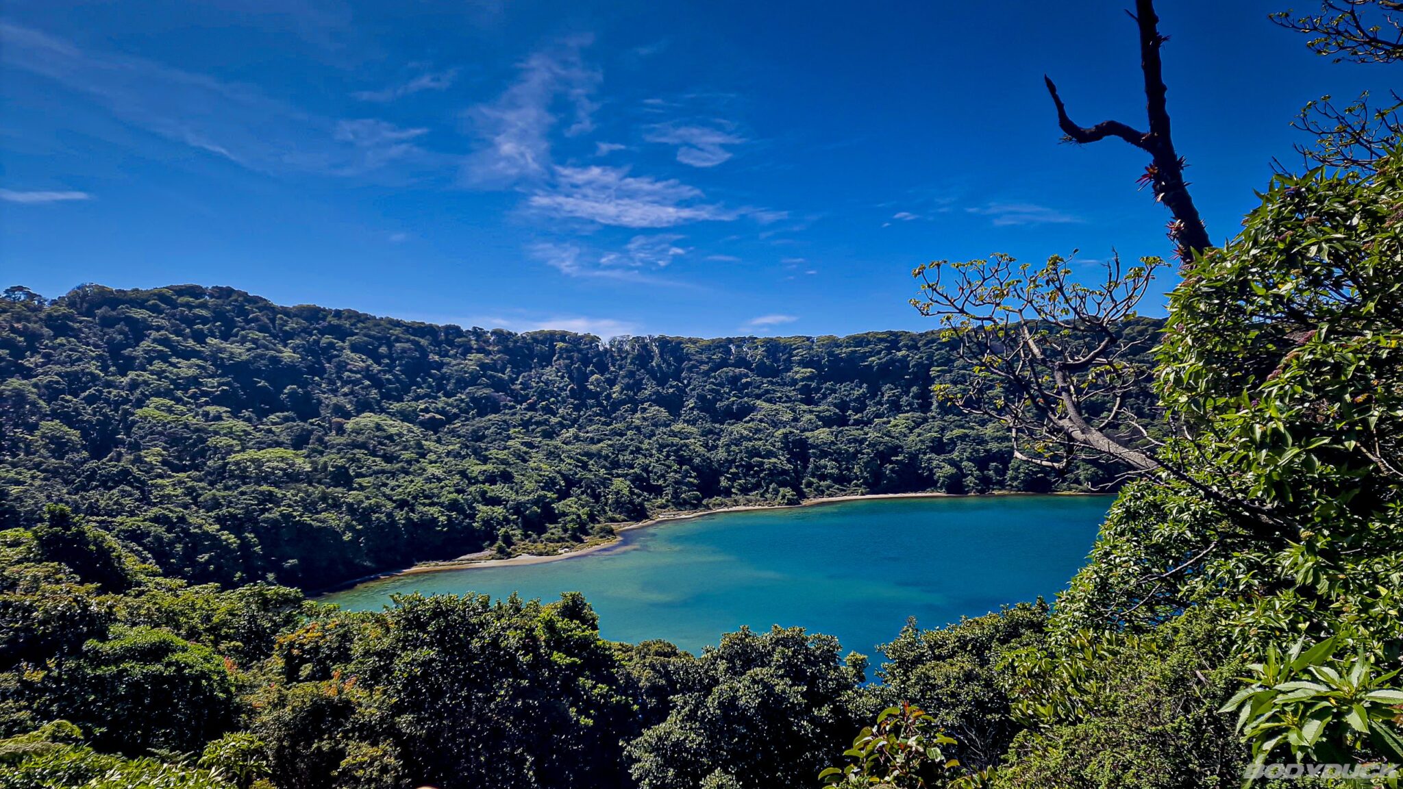 Der Weg zum Vulkan erstreckt sich über etwa 800 Meter. Obwohl ein 2,8 Kilometer langer Rundwanderweg durch den angrenzenden Wald normalerweise als Rückweg dient, ist der Trail ab dem Mirador Botos wegen Wartungsarbeiten geschlossen, sodass wir denselben Weg zurückgehen müssen. Der Poás-Vulkan zählt zu den aktivsten Vulkanen in Costa Rica und zeigt seit Ende März 2025 erneut Aktivität durch den Ausstoss von Tephra. Der aktuell geöffnete Mirador ermöglicht uns bei guten Wetterbedingungen den Blick auf den Hauptkrater, der mit einem Durchmesser von circa 1’500 Metern und einer Tiefe von rund 300 Metern zu den grössten weltweit gehört. Der dortige See weist einen pH-Wert von unter 1 auf und gilt als einer der sauersten der Welt. Zudem beobachten wir im Nebenkrater die Laguna Botos, die sich durch angesammeltes Regenwasser gebildet hat.