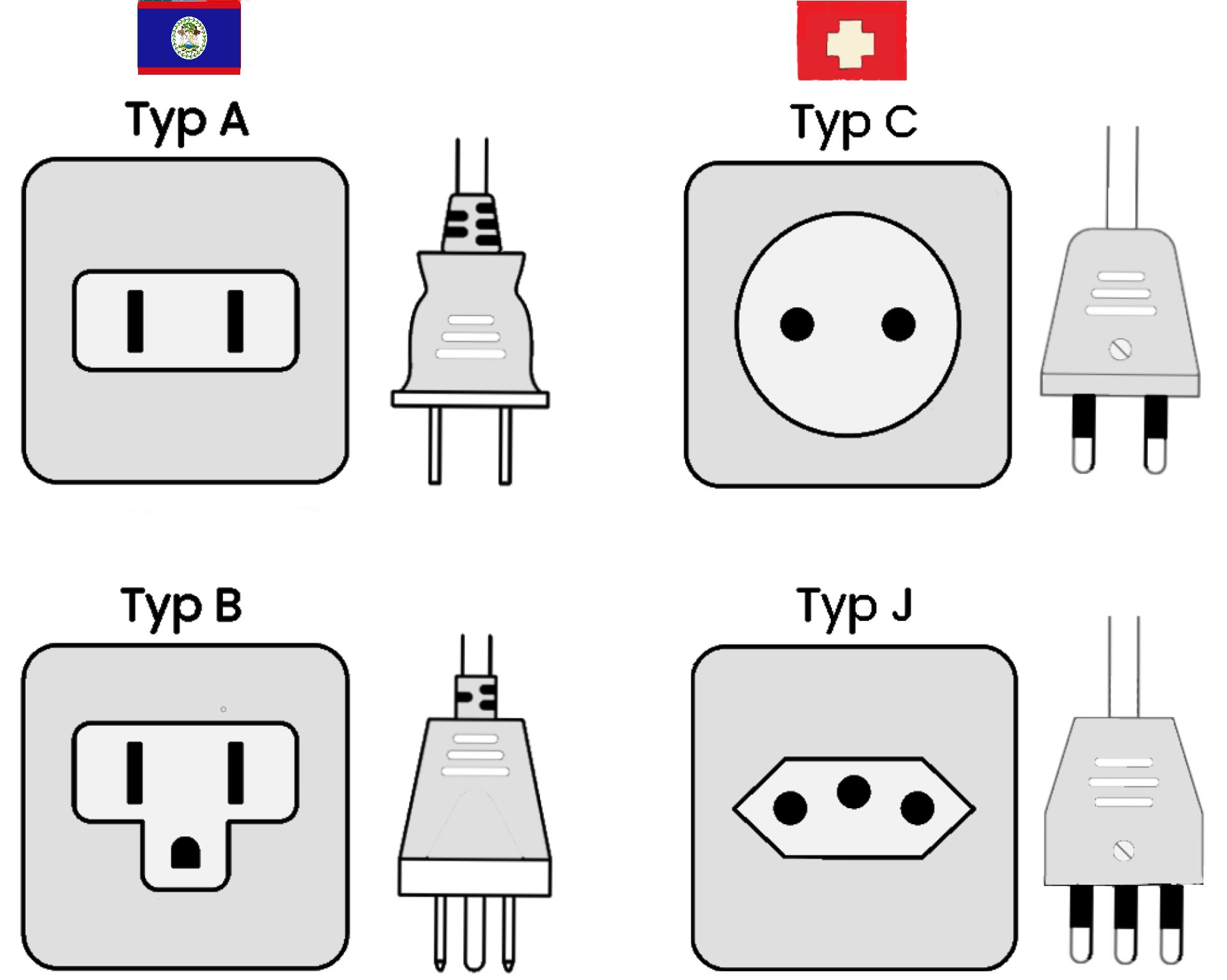 In Belize ist wie bei den nördlichen Nachbarn ausschliesslich 110/120 Volt Wechselstrom, 60 Hertz (Schweiz 50 Hertz). Für die Steckdosen wird ein Adapter Typ A oder B benötigt, ausserdem sollte ein Spannungswandler für nicht auf 110 V umschaltbare Elektrogeräte mitgeführt werden.